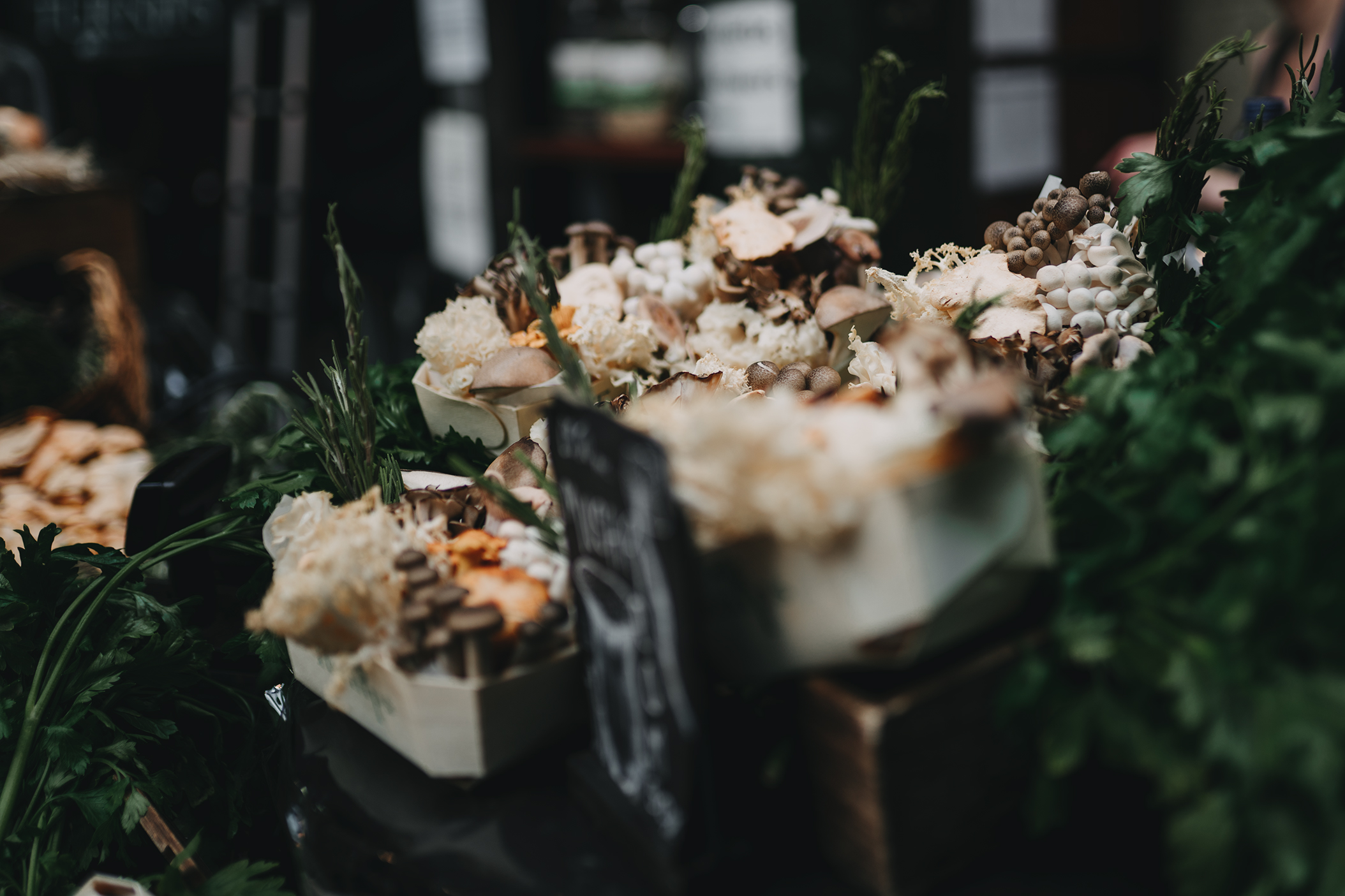 Mushroom Display. Borough Market, London. 2019.